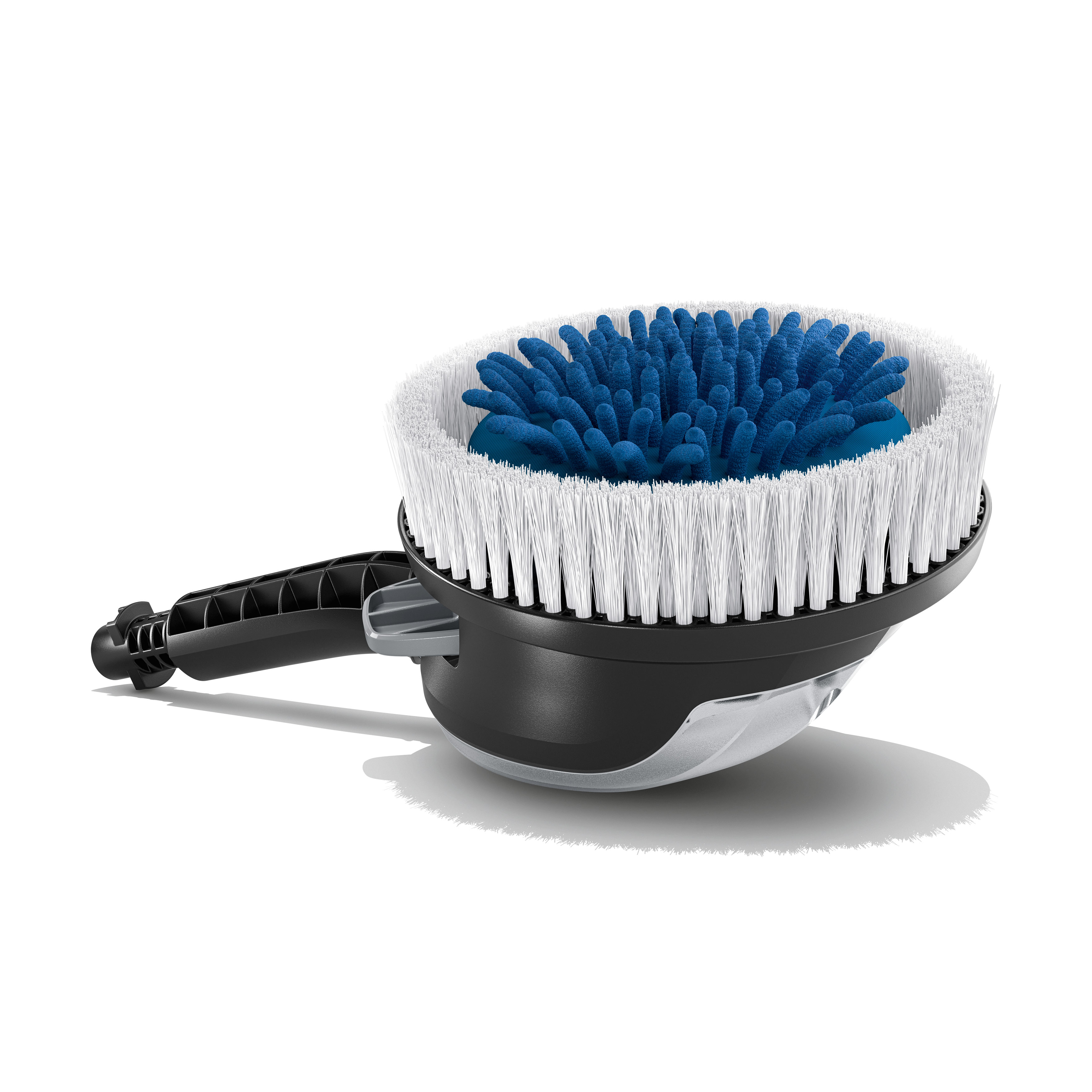 По окончании работы текстильную накладку можно выстирать в машине при температуре 60 °C. Вращающаяся щетка совместима со всеми аппаратами высокого давления Karcher классов K 2 – K 7. При необходимости может дополнительно использоваться чистящее средство, подаваемое аппаратом высокого давления, к которому присоединена щетка.